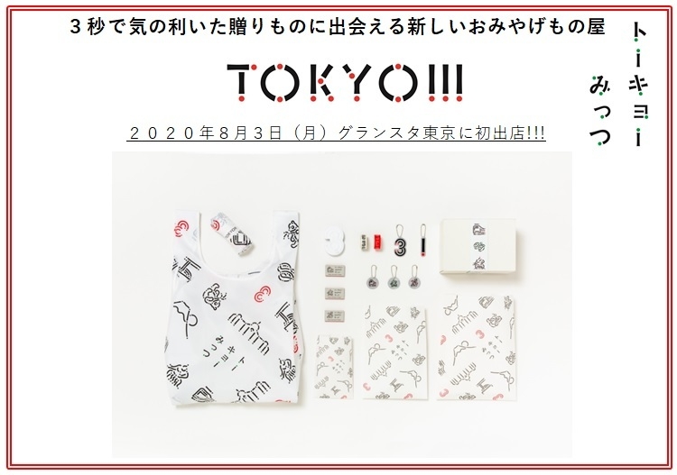 3秒で気の利いた贈りものに出会える 新しいおみやげもの屋「TOKYO!!!(トーキョーみっつ)」が グランスタ東京に2020年8月3日(月)にオープン!!!