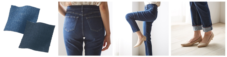 1.太ももの肉感を隠す綿×再生繊維素材のストレッチデニム生地