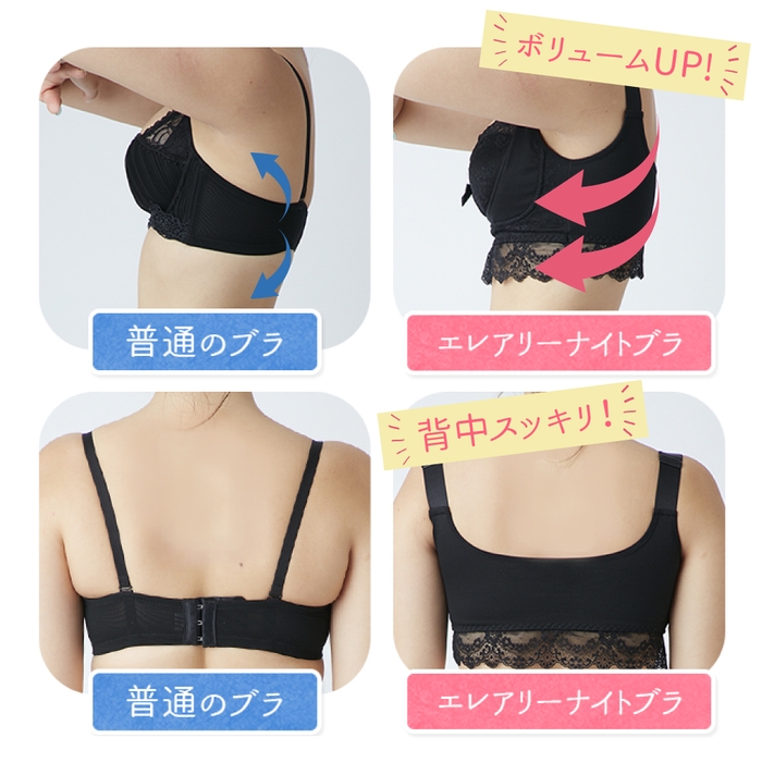 就寝中の仰向き時、横向き時もワキに流れがちなバストをしっかりと包み込み、バストの黄金比と言われる美しい丸みのあるバストに導きます。