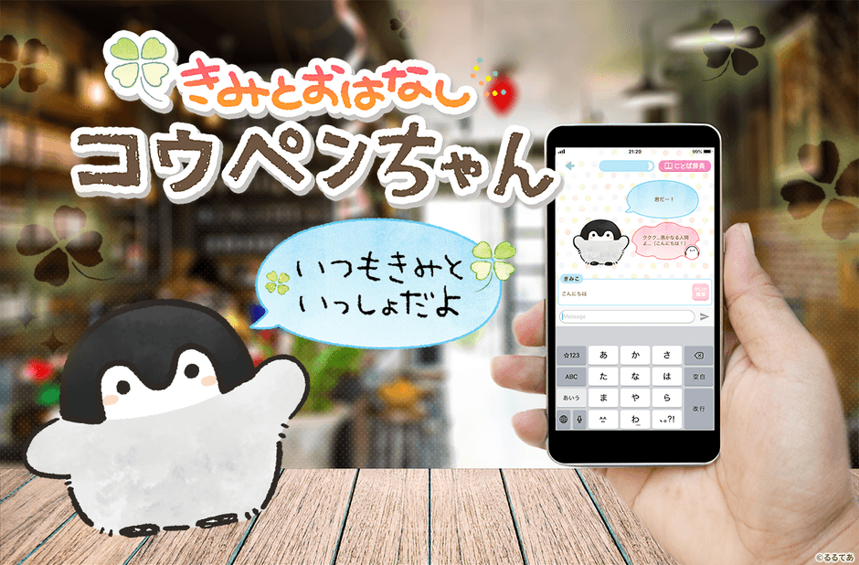 『きみとおはなしコウペンちゃん』はSNSで大人気のキャラクター「コウペンちゃん」とのフリートークを楽しむチャット形式のアプリです。「コウペンちゃん」と会話をすればするほど「コウペンちゃん」が新しい言葉を覚えていき、トークのバリエーションが増えていくほか、「邪(よこシマ)エナガさん」や「アデリーさん」も会話に参加するようになります。さらに、「コウペンちゃん」に特定のキーワードを話しかけると、「コウペンちゃん」からの心温まる言葉とともに「るるてあ」の原作画像が解放される「ことば辞典」機能を搭載し、「コウペンちゃん」との会話を通してコレクション要素も楽しめる、ファンにはたまらないアプリです。