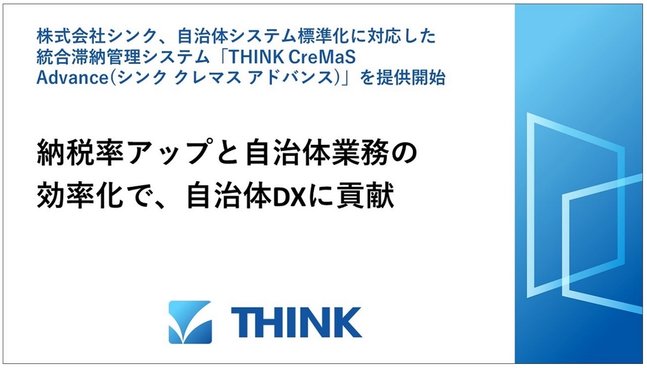 株式会社シンク、自治体システム標準化に対応した 統合滞納管理システム「THINK CreMaS Advance (シンク クレマス アドバンス)」を提供開始
