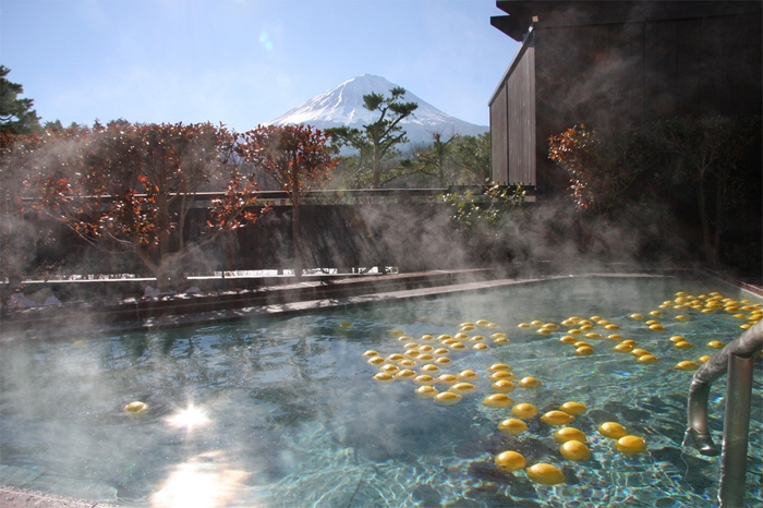 「富士眺望の湯ゆらり」には、世界文化遺産・富士山を眺めながらお風呂に浸かることができる露天風呂、「パノラマ風呂」があります。その「パノラマ風呂」に季節感のある物を浮かべて「変わり湯」を楽しんでいただくイベントが「お風呂の日」です。今月9月26日の「変わり湯」は、寒くなってくるこれからの季節にピッタリの血行促進や、冷え症改善に効果がある「レモンの湯」です。