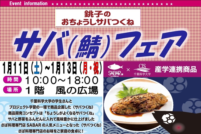 銚子港が水揚げ日本一のサバを生かし、千葉科学大学(千葉県銚子市潮見町)の学生が商品開発にかかわった産学連携商品「銚子のおちょうしサバつくね」が2020年1月11日(土)~13日(月・祝)、同市三崎町のイオンモール銚子店で開かれる「サバフェア」で販売されます。