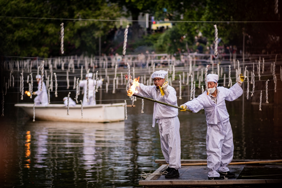 1000年を巡る輪廻転生のラブロマンスを描いた韓国ドラマ『生まれ変わってもよろしく』でも登場した、幻想的な世界が楽しめる「咸安落火ノリ」。炭と韓紙(韓国伝統製法の紙) をねじって縄状に編んだ「落火棒」数千本をひもにぶら下げて火をつける、民俗行事の花火のお祭りで、慶尚南道の無形文化財第33号にも指定されています。毎年釈迦誕生日(旧暦4月8日)に行われており、祝賀公演、祭礼行事、落火棒点火、招待歌手公演などさまざまな見どころあるのが魅力です。