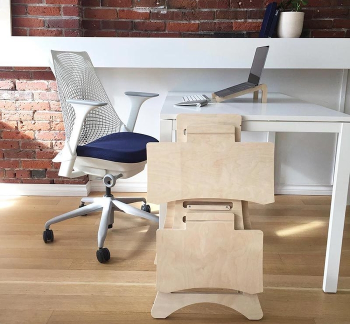 高品質のバーチ材合板を使用し、あらゆるデスクをスタンディングデスクに変えるミニマルデザイン。
