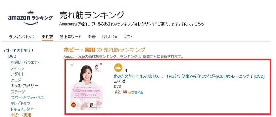 健康・美容につながる『OBT式トレーニング』を解説するDVD 『歯のためだけではありません! 1日2分で健康や美容につながるOBT式トレーニング!』が AmazonDVD ホビー・実用 売れ筋ランキング1位を獲得!