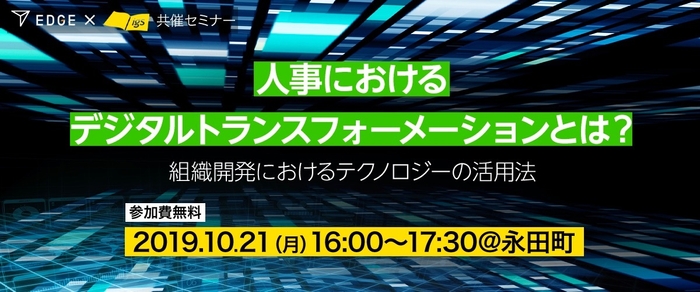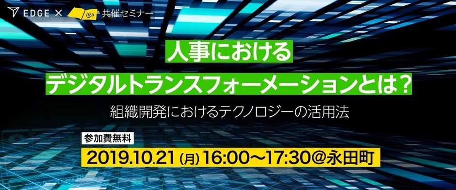 EDGE株式会社(本社:東京都千代田区、代表取締役社長:佐原 資寛、以下 EDGE)は、2019年10月21日(月)にInstitution for a Global Society株式会社との共催で、【人事におけるデジタルトランスフォーメーションとは?~組織開発におけるテクノロジーの活用法~】と題したセミナーを開催します。