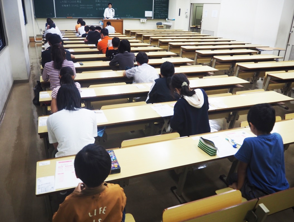 検定は、天文・宇宙の知識を問うとともに科学の楽しさを知ってもらおうと年に1回開かれています。岡山理科大学岡山キャンパスのC2号館1階会場には両親と一緒に訪れた子どもたちの姿も目立ち、各級別にそれぞれ真剣な表情で、設問に向かっていました。