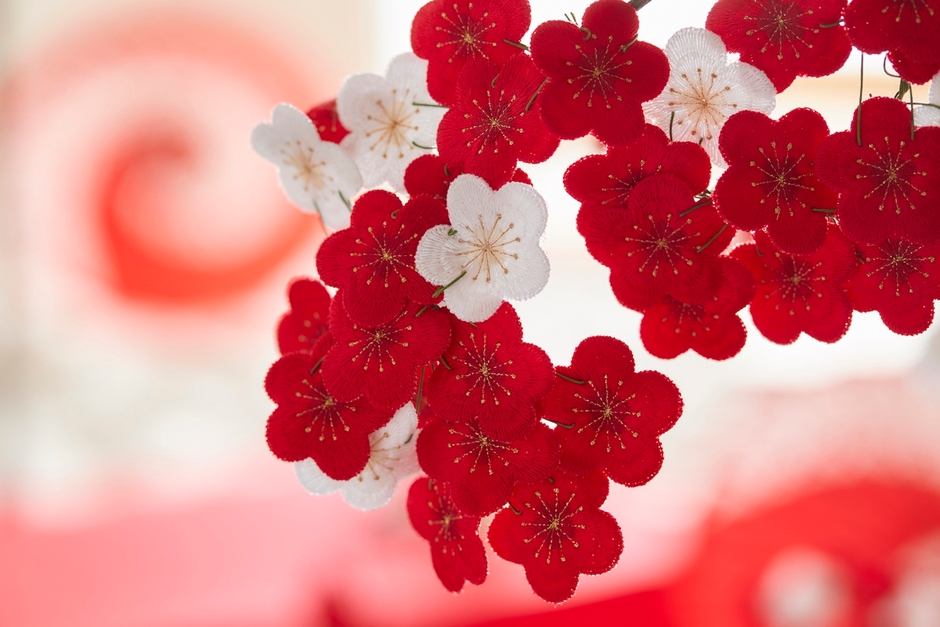 ソラノビーチBooks&Cafeに「梅の花咲くビーチ」が登場します。熱海梅園から譲り受けた梅の枝に、刺繍でできた梅の花を約5,000個飾り付けて作成した「梅の木オブジェ」で彩る空間です。日本一早咲きの梅で有名な熱海梅園では「熱海梅園梅まつり」開催時に最も美しい梅の状態になるよう枝の剪定作業が行われています。その際に出た枝にもう一度花を咲かせ、ビーチ空間に設えることで、他にない梅の花見を楽しめます。