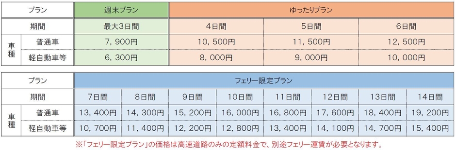 車でフェリーに乗って本州から北海道へ旅行されるお客さま限定で、7日~14日間の長期間、高速道路が乗り降り自由になります。ご利用期間等の詳細は後日お知らせします。