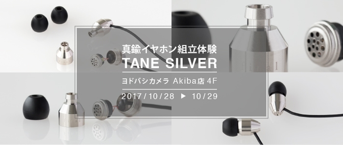 国内オーディオメーカーS'NEXT(エスネクスト)株式会社(代表:細尾 満)は、自社ブランドfinalの人気企画、「イヤホン組立体験」が国内開催50回を迎えたことを記念して、イベント最新モデル「TANE」の新色、ロジウムコート仕上「TANE SILVER」を発表、2017年10月28日(土)、29日(日)にヨドバシカメラ マルチメディアAkiba店にて初開催いたします。