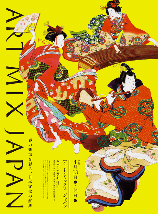 アートミックスジャパン実行委員会は、三味線や和太鼓、落語・狂言・神楽舞など、多彩な日本文化をまるごと楽しめる和の祭典「アート・ミックス・ジャパン2019」を、2019年4月13日(土)~14日(日)の2日間、新潟市で開催いたします。