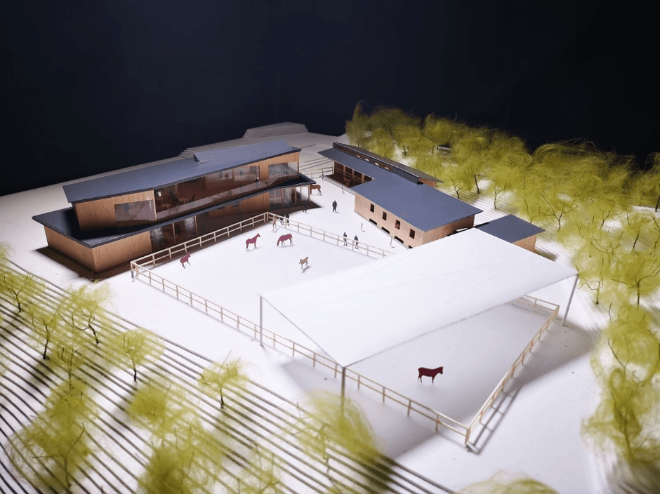 栗東市の遊休地を活用し、人にも馬にも優しい環境設計の研究を進める滋賀県立大学、明星大学の研究室による監修・設計、滋賀県唯一の上場企業で栗東市に本社を置く株式会社三東工業社による設計・施工という産官学連携に準ずる体制で進めています。