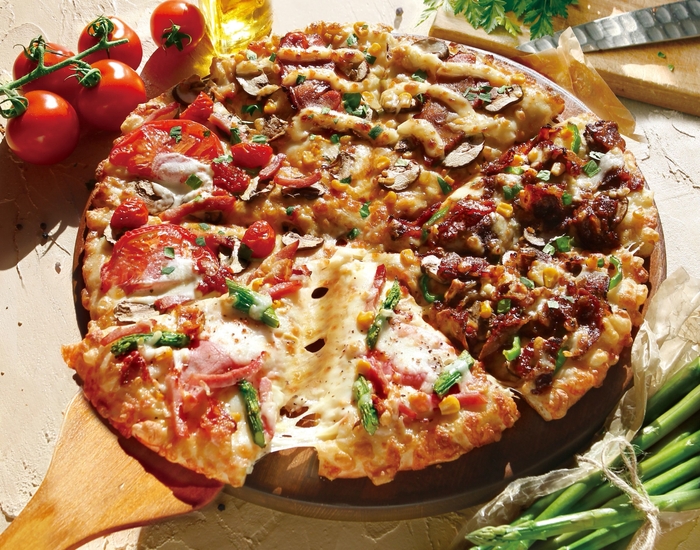 イチキュッパ!1,980円(税抜)のお求めやすい価格はそのままに、新商品「特製ミートソースとマスカルポーネのピザ」、「とろけるチーズと粗びきソーセージ」を加えて新たなおいしさに生まれ変わりました。個性的な味が1枚で楽しめる大人気クォーターピザです。