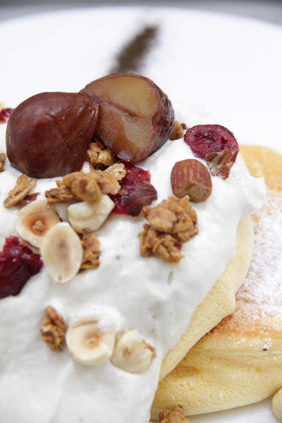 国産の和栗をたっぷりと使いまさにモンブランの名にふさわしい贅沢なパンケーキに仕上げました。