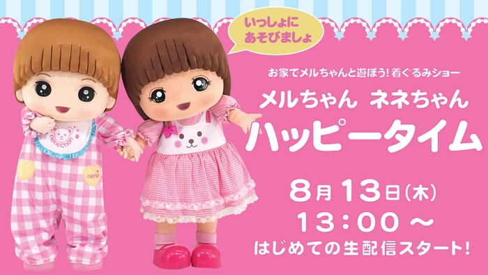 STAY HOMEの夏休みは お家でメルちゃんの着ぐるみショーを見よう! 着ぐるみショー「メルちゃん ネネちゃん ハッピータイム」 初のオンライン生配信! 8月13日(木)13:00より動画配信スタート
