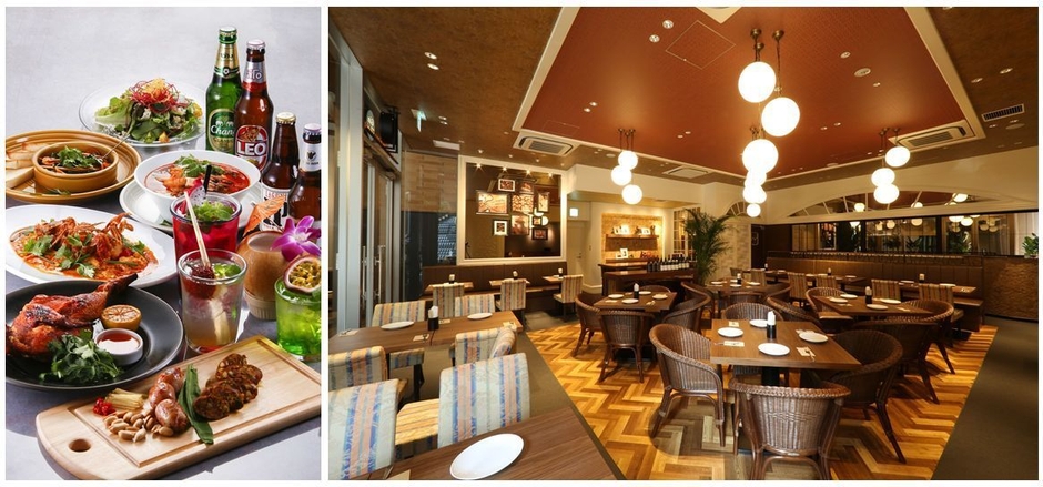 カリフォルニアのビーチ・海風・まぶしい陽光をイメージした、オシャレなタイ料理のカフェレストラン。おなじみの生春巻、ソムタム(青いパパイヤのサラダ)から味わって、ガイヤーン(若鶏のグリル)やトムヤムクンなどの本格タイ料理を堪能したら、すっかり気分はオリエンタル・リゾート。ガパオライス、パッタイ、グリーンカレー、ソフトシェルクラブのプーパッポンカリーなど、食事メニューも充実。契約農家から仕入れるパクチーなどのハーブやいろいろな野菜をたっぷり使ったカリフォルニアン・スタイルだから、軽くてヘルシー。香辛料が効いていながらも、上品で繊細な味わい。トロピカル・デザートとともにカフェタイムも楽しめます。