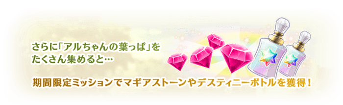 期間限定ミッションを達成することでマギアストーンや「オーバーリミッター」「デスティニーボトル」「レインボーオーブ」「マギアチップ」を獲得できます。