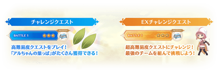 そのほか、高難易度のバトルとなるチャレンジクエスト、EXチャレンジクエストやマギアストーンを合計75個獲得できる百禍チャレンジクエストもプレイできます。