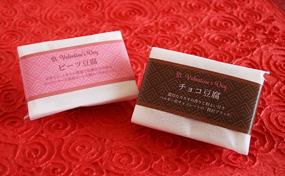 醤油・味噌・豆腐などの伝統食品を製造・販売するヤマキ醸造(本社:埼玉県児玉郡、代表取締役社長:木谷 善光、以下 当社)の豆腐工房 豆庵で1月18日からバレンタインに向けてピンクの豆腐とチョコ豆腐を販売開始いたしました。豆腐の美味しさを生かしつつ、バレンタインの要素を入れ込んだ今までにない新しい創作豆腐のご案内です。甘いものが苦手だったり、健康を意識される方へのバレンタインギフトにおすすめいたします。