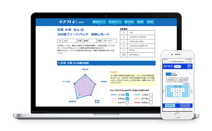 評価後の目標設定の効果最大化を目的として、360度評価支援システム「スマレビ for 360°」の結果通知であるオンラインレポートをバージョンアップいたしました。得られた結果に対して対象者本人が評価を読み解き、今後どのような目標を立て、行動していく必要があるかを示唆する内容を追加しています。