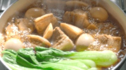 殻をむいたゆで卵を加え、さらに10分煮る。 - 全体に煮汁をからませ、器に盛り、チンゲンサイを添える。