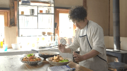 古民家をリノベーションしてセンスよく住みこなしているムロツヨシさん。みずみずしい野菜に感謝しながらムロツヨシさんが料理するのは、「味ぽん:水=1:1」で作る「チンゲンサイと豚のさっぱり角煮」、そして「味ぽん:トマトジュース=1:1」で作る「なすとひき肉のさっぱりトマト煮」。料理を味わった家族は、その美味しさに思わず笑顔がこぼれます。「味ぽん」と1:1で作る「1 to 1(ワントゥーワン)メニュー」で、家族の幸せが広がる様子をお楽しみください。