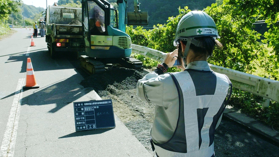 八戸市内の建設会社に勤務する土木現場監督見習いの小枝さん。