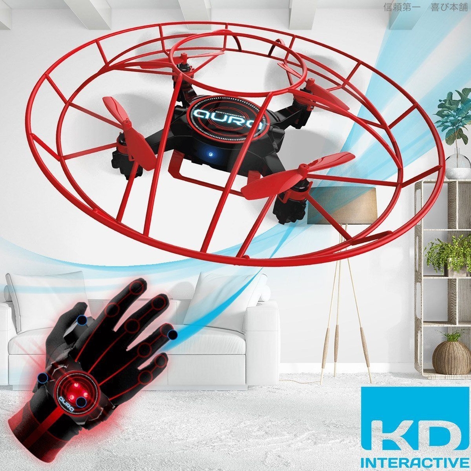 『Aura』は手を動かしながら直感的に操縦できるのでキッズや初心者にもピッタリのドローンです。使い方はとても簡単で、専用のグローブを手にはめて動かすだけです。前後左右の動きはもちろんのこと、手のひらを下に向けたまま、高さを上下すると高度を変えてくれます。さらに360度クルっと回転するフリップや垂直回転なども手を動かすだけで行えます。通常のコントローラーでの飛行よりも短い時間でドローンの醍醐味を味わえ、アクロバット飛行もできて、まるでSF映画の主人公になったような気分を楽しめます。