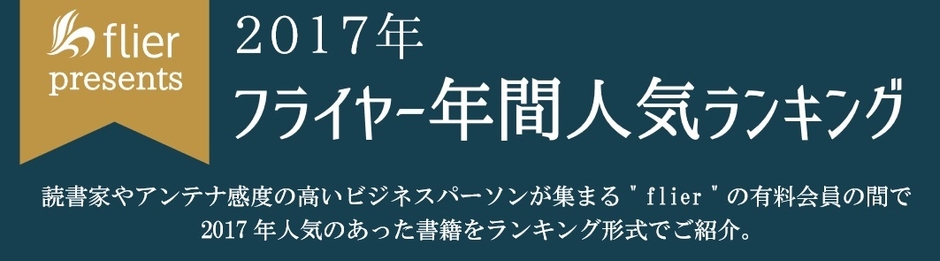 本ランキングは2017年1月1日~12月31日の間に有料会員によって読まれた記事の閲覧数をもとに算出しており、いまのビジネスパーソンが注目している書籍が目白押しとなっています。
