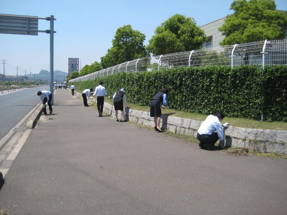 神原ロジスティクスでは、日頃より清掃活動に努めています。また、近隣の事業所や運送業者にも賛同していただき、道路をきれいに保つことができています。今後も社会貢献活動の一環として、継続していきます。