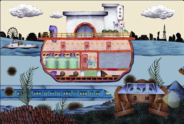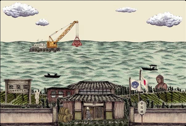 小島組の創業100周年を記念し、過去から現在、そして未来へと、明るくて親しみを感じる土木、ノスタルジックだが新しい浚渫を描く。
