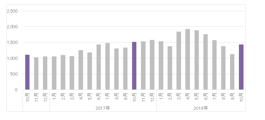 購買ビッグデータ分析の株式会社True Data(トゥルーデータ/本社:東京都港区、代表取締役社長:米倉 裕之)は、全国ドラッグストアのPOSデータによる2018年10月のインバウンド消費動向調査を発表します。ドラッグストアのインバウンド消費1店舗あたりの購買件数は、前年同月比が5.2%減少し1,435件でした。前年同月には届かなかったものの、災害の影響で大きく落ち込んだ前月からは回復傾向にあり、ほぼ平年並みを取り戻しています。1レシート当たりの購買単価は、前年同月比で6.6%増加し15,452円と、国内消費と比べて9.5倍を記録しました。