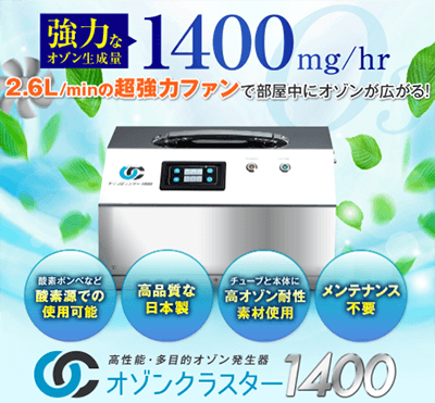 対象となる企業様に、オゾンマートが開発・販売するオゾン発生器の中で最も高濃度・迅速に脱臭を行える「オゾンクラスター1400」(248,000円)を無償で提供いたします。