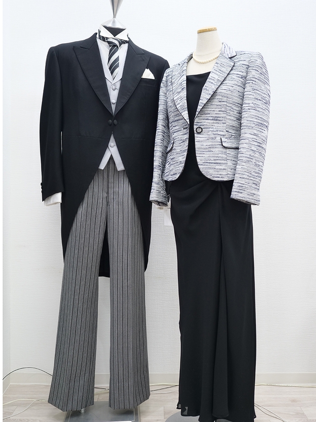 ご子息の結婚や式典、入学式、卒業式など。たえずイベントごとの多い夫婦のみなさまへは「ママドレス・パパモーニング」セットをご用意しております、また、すぐに大きくなるお子さま用のドレスもご用意しておりますので、家族で一か所にて揃えることができます。