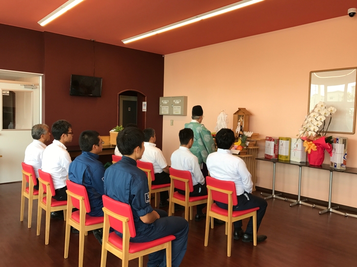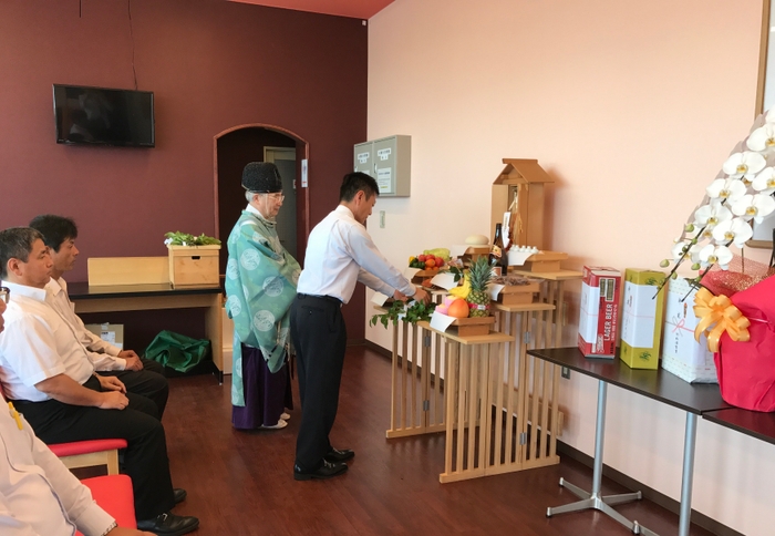 24時間営業のセルフサービスステーションにリニューアルしたツネイシCバリューズの「セルフ松永南SS」(広島県福山市)で、7月12日、社長・役員ら出席のもと竣工祭が執り行われ、改装工事の無事を感謝するとともに、新店舗の安全と繁盛を祈念しました。