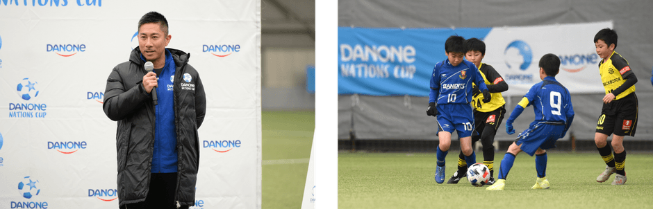 昨年2019年2月の開催時は、一部のみのオープンとなっていた「Jヴィレッジ」も昨年4月に全面再開され、会場は選手だけでなく、地域の方々や応援に駆け付けた多くの来場者で溢れていました。大会アンバサダーとして2年連続で会場に訪れた前園氏は、参加した選手たちのプレーを観戦しただけでなく、ダノンヨーグルトなどのサンプリングを実施するなど、選手や観戦に訪れた方々とのふれあいを楽しんでいました。