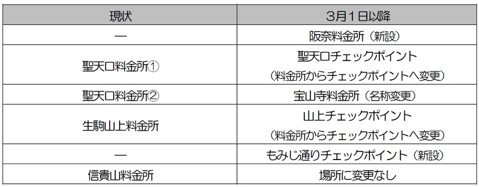 1. 自動ゲートの導入後の料金所変更・廃止、チェックポイントの新設について