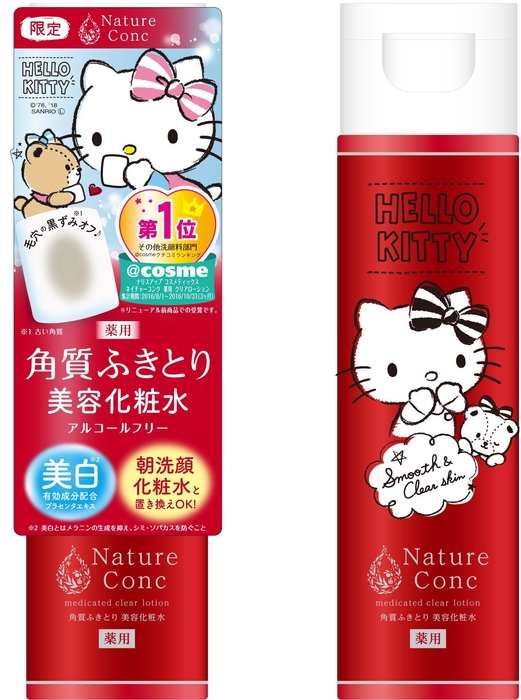ふきとり化粧水を研究開発して80年 株式会社ナリスアップ コスメティックス(代表取締役社長:西田 隆一)は、角質ふきとり美容化粧水「ネイチャーコンク 薬用 クリアローション」において、世界的大人気サンリオキャラクター「ハローキティ」とコラボした限定品を発売しました。