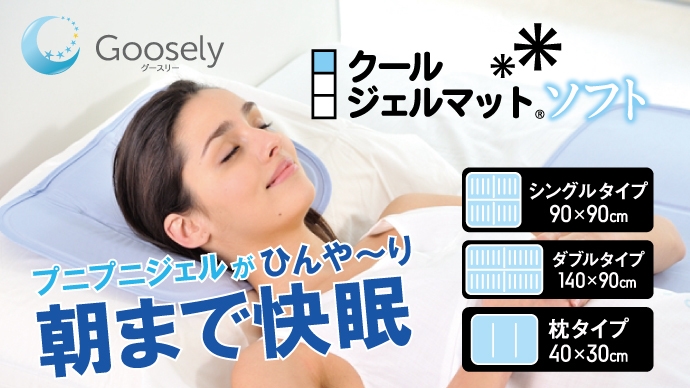 真夏の熱帯夜対策として手軽にひんやり快適な眠りを体験したい方からご好評いただき、「グースリー クールジェルマット」の支援をしていただいております。
