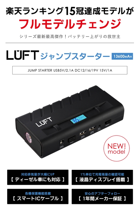 楽天ランキング1位のカー用品 『LUFT ジャンプスターター』新モデルを発売