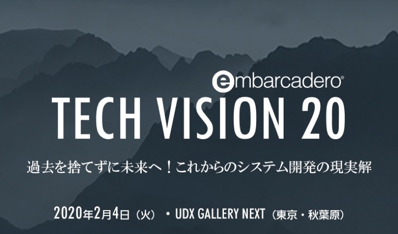 エンバカデロ・テクノロジーズ(本社:米国テキサス州オースティン、日本法人:東京都文京区、 日本法人代表:藤井 等)は、ファーストリリースから25周年を迎えたDelphiの記念イベントとユーザー部門や開発会社向けの既存アプリケーション資産を、最新技術を活用して新しい価値を生み出す「モダナイゼーション」の手法を伝える新規の技術イベント『Embarcadero Tech Vision 20』を2月4日(火)に開催します。
