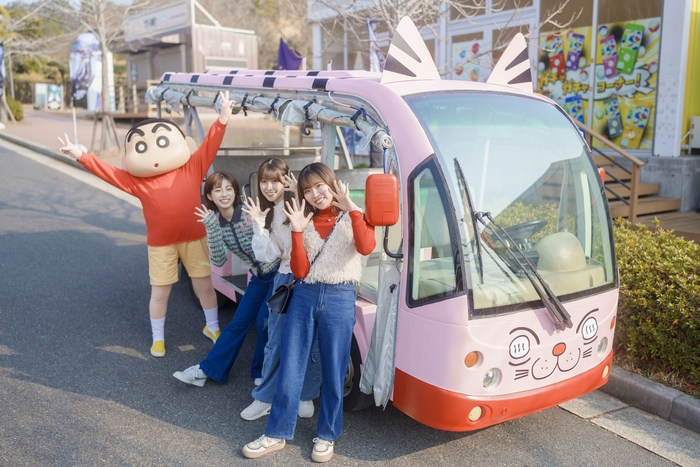 アニメパーク「ニジゲンノモリ」 駐車場からアトラクションまでひとっ飛び! クレヨンしんちゃんアドベンチャーパーク「ふたば幼稚園トラム」
