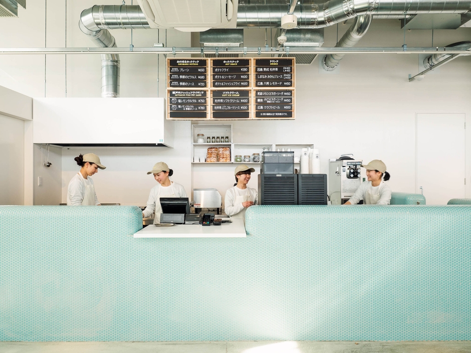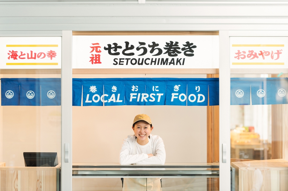 尾道の山と海の幸を包む巻きおにぎりスタンドに、ローカルファーストフードが楽しめるカフェ。尾道のお土産に日常使いできる食品やグッズを取り揃えたショップ。
