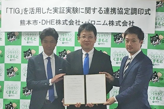 そこで、実証実験を実施することに伴い、パロニム、熊本市、DHEは2018年5月29日、相互に緊密な連携を図ることにより、双方の資源を有効に活用した活動を推進し、熊本市への国内外観光客誘致の促進及び知名度向上を図ることを目指して連携協定を締結いたしました。