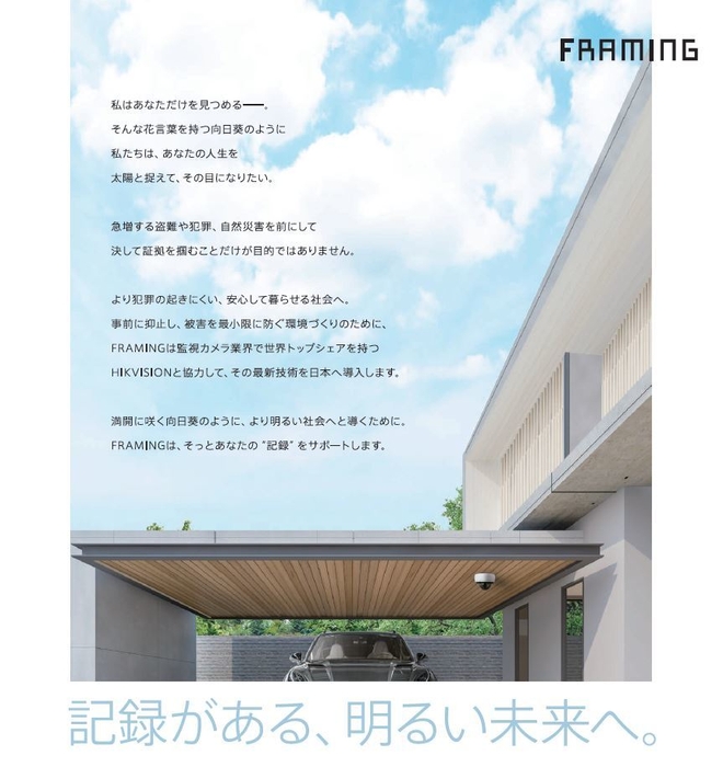 本機の映像記録は、車両盗難、物品盗難、イタズラなど犯罪時における決定的証拠になるだけではなく、本機を設置することで犯罪を抑止する効果も期待できると考えています。近年、急増する台風などの自然災害の際にも、ガレージ/カーポートの状況をリアルタイムで確認することが可能となります。個人向けの防犯設備でありながら、社会全体の治安を向上させ、引いては日本の明るい未来を築き上げる一助となる気持ちで展開してまいります。