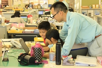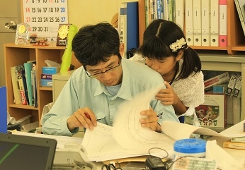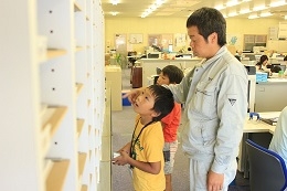 職場参観では、工場や事務所といった保護者の働く環境に仲間入り。お父さんと一緒に設計書類の確認をしたり、お母さんと一緒にエクセルで伝票を作成したりと、普段の仕事を体験しました。