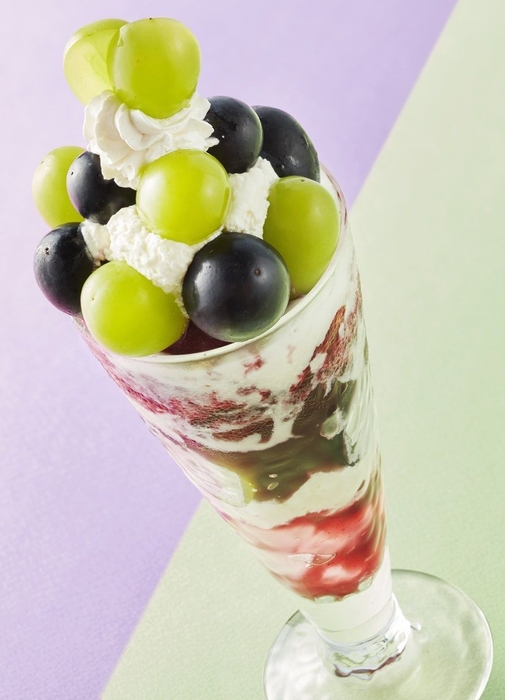 【秋のいいとこどり!】 ナガノパープルとシャインマスカットを1度に両方味わう たっぷりぶどうのW水玉パフェ