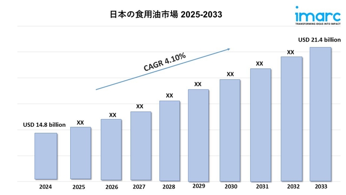 日本の食用油市場規模は2024年にUSD 148億に達しました。今後、IMARC Groupは同市場が2033年までにUSD 214億に達し、2025年から2033年の間に年平均成長率(CAGR)4.10%で成長すると予測しています。