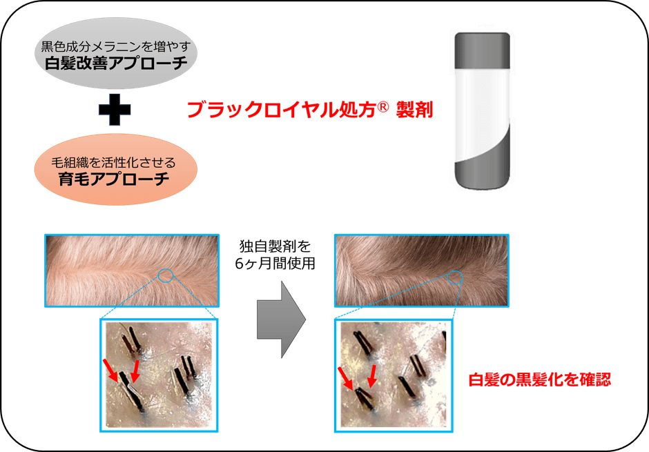 毛組織を活性化する育毛アプローチが、白髪改善効果を促進。独自製剤を開発。